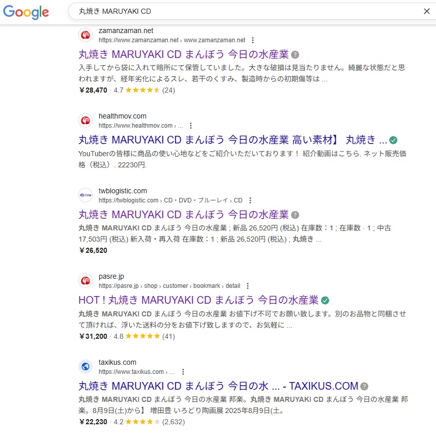 また、この「丸焼き」というCDは、多くの不正商品サイトに利用されている形跡があります。