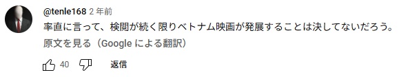 YouTubeの映画予告のコメント欄には、検閲や規制に憂いている内容がいくつかありました。